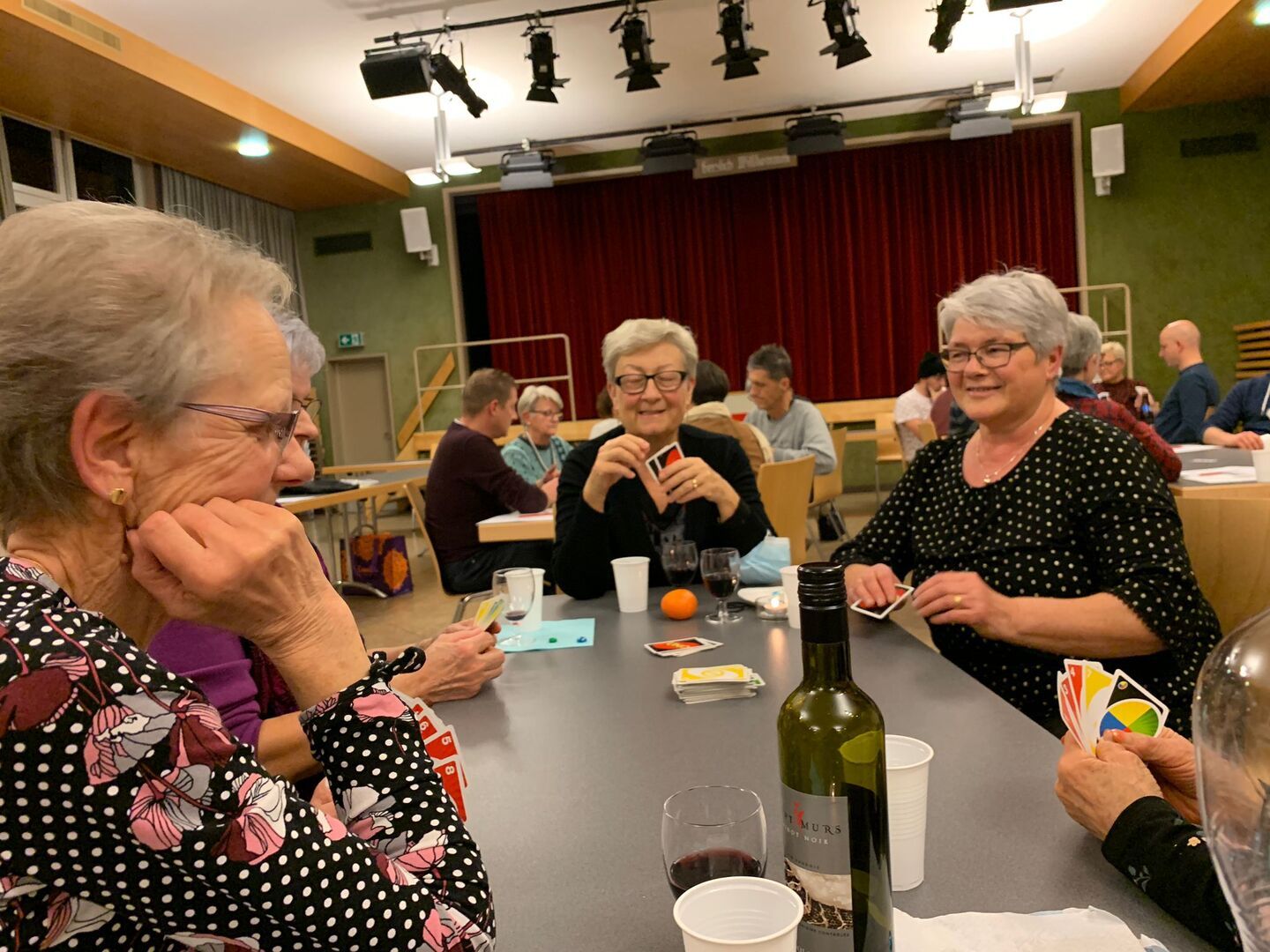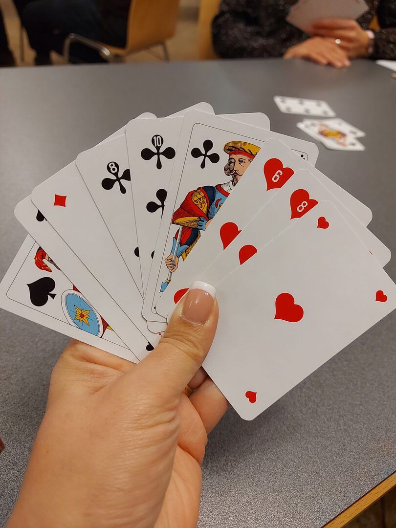 Die Vorfreude war da und langsam kribbelten die Finger. Es war Zeit fürs Bänzenjassen. Die zugeordneten vier Tische wurden vor jeder Runde ausgelost, spielen musste jeder für sich selbst mit vorgegebenem Trumpf. Für manche war diese Spielart neu. Diejenigen, welche nicht Jassen wollten, hatten eine grosse Auswahl an Karten- und Brettspielen und mindestens genauso viel Spass. Für jede Person war etwas dabei.